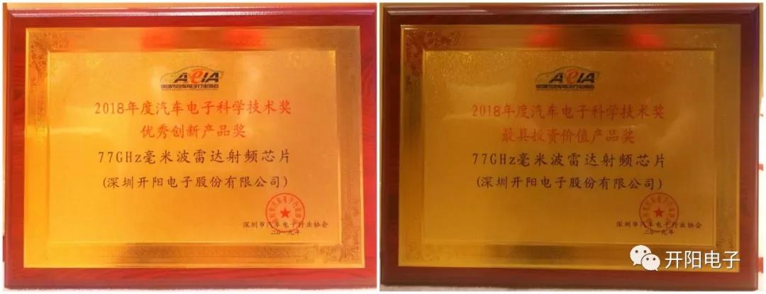 會上,開陽電子自主研發(fā)的“77GHz毫米波雷達(dá)射頻芯片”一舉獲得兩項(xiàng)中國汽車電子科學(xué)技術(shù)獎——“優(yōu)秀創(chuàng)新產(chǎn)品獎”和“最具投資價(jià)值產(chǎn)品獎”。